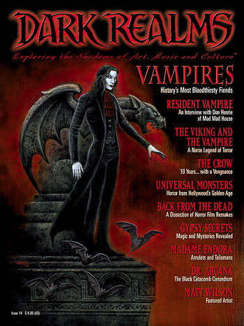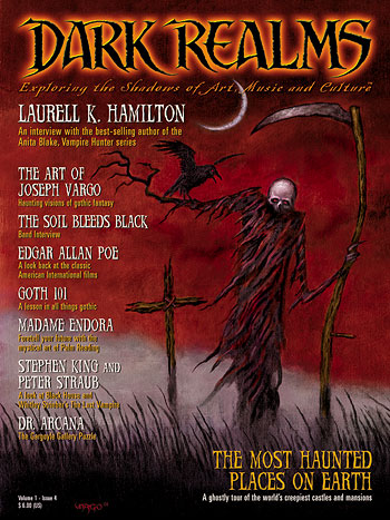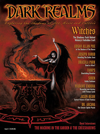 We were very thrilled to receive our copies of Dark Realms and we were likewise impressed by the continued quality of your magazine! I also wanted to compliment you once again on the Madame Endora palmistry spread. That was very cool! I really like the way that four-page feature turned out. Goth 101 was nice too!