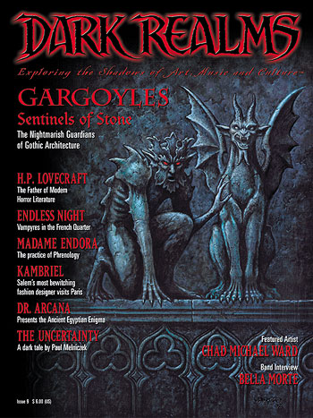 Dark Realms has it all. I really enjoy this magazine because it doesn't focus its content on one or two things, but rather encompasses all aspects and angles of the gothic genre and culture. Yet another plus is the fact that, unlike many magazines on the stands today, this one isn't bogged-down by advertisements. You don't have to turn past ten pages of ads between articles and reviews...
