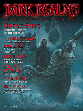 This quarterly feast-for-the-eyes is so beautiful that we feel Dark Realms should be designated first as a quarterly of pop-gothic art. Dark Realms offers a visual cornucopia in every issue: photos, insets, calligraphy and runes... stunning artwork adorns each and every page. Even the ads (and there aren't too many) are visual stunners. We're deeply, deeply attracted and swooning under the Siren's spell.